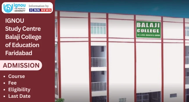 IGNOU Study Centre Balaji College of Education Faridabad: Balaji College of Education was opened in Haryana, India, in 2007. A well-known college offering top-notch instruction. IGNOU Study Centre is also present at this college. classes, courses, and services for both UG and PG students are available at IGNOU Study Centre Balaji College of Education. IGNOU has started the admission procedure for 2025 academic session.