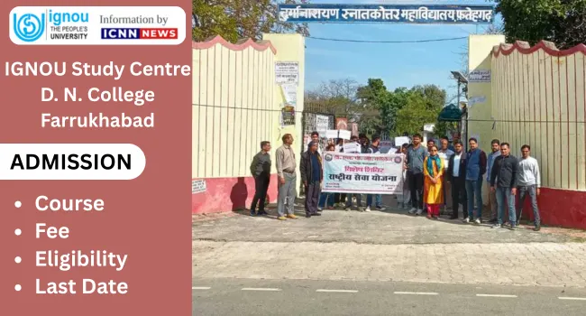 - Admission at the IGNOU Study Centre D.N. College Farrukhabad has been started. Students can visit IGNOU D. N. College for offline form submission.