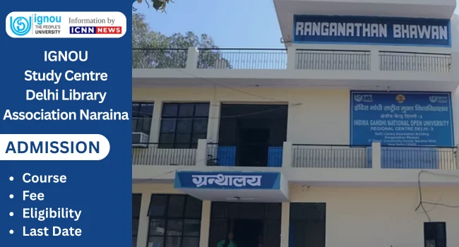 IGNOU Study Centre Delhi Library Association Naraina: The D.L.A Narayana company was founded in Delhi, India, on 10 March 1939. This group of organizations functions through the Delhi 3 Regional Center as an IGNOU study center. The IGNOU Study Center Delhi Library Organization offers BLIS, CLIS, MLIS, and PGDLAN classes, programs, and services.