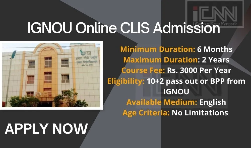 - Indira Gandhi National Open University (IGNOU) provides direct admission in Online CLIS without any entrance exam. The last date for admission is 30 September 2025.