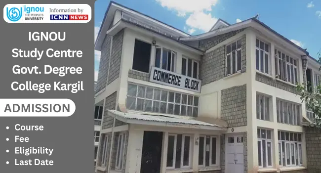 Govt. Degree College Kargil offers services for IGNOU courses such as BSc, CFN, BCom, CTS, DTS, CWED, CIG, and more, in addition to its Science, Arts, and Commerce courses. The Srinagar Regional Centre operates it, and 1249 is the study centre code.