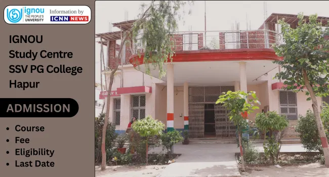 IGNOU Study Centre SSV PG College Hapur Admission: SSV PG College operates as an IGNOU Study Center. They offer classes in BA, BCA, CNM, BPP, BSCG, CIT, and other subjects, known as the IGNOU Noida. Students get more in-depth information about their course material here due to organized classes. Admission is currently open at SSV PG College in 2025.